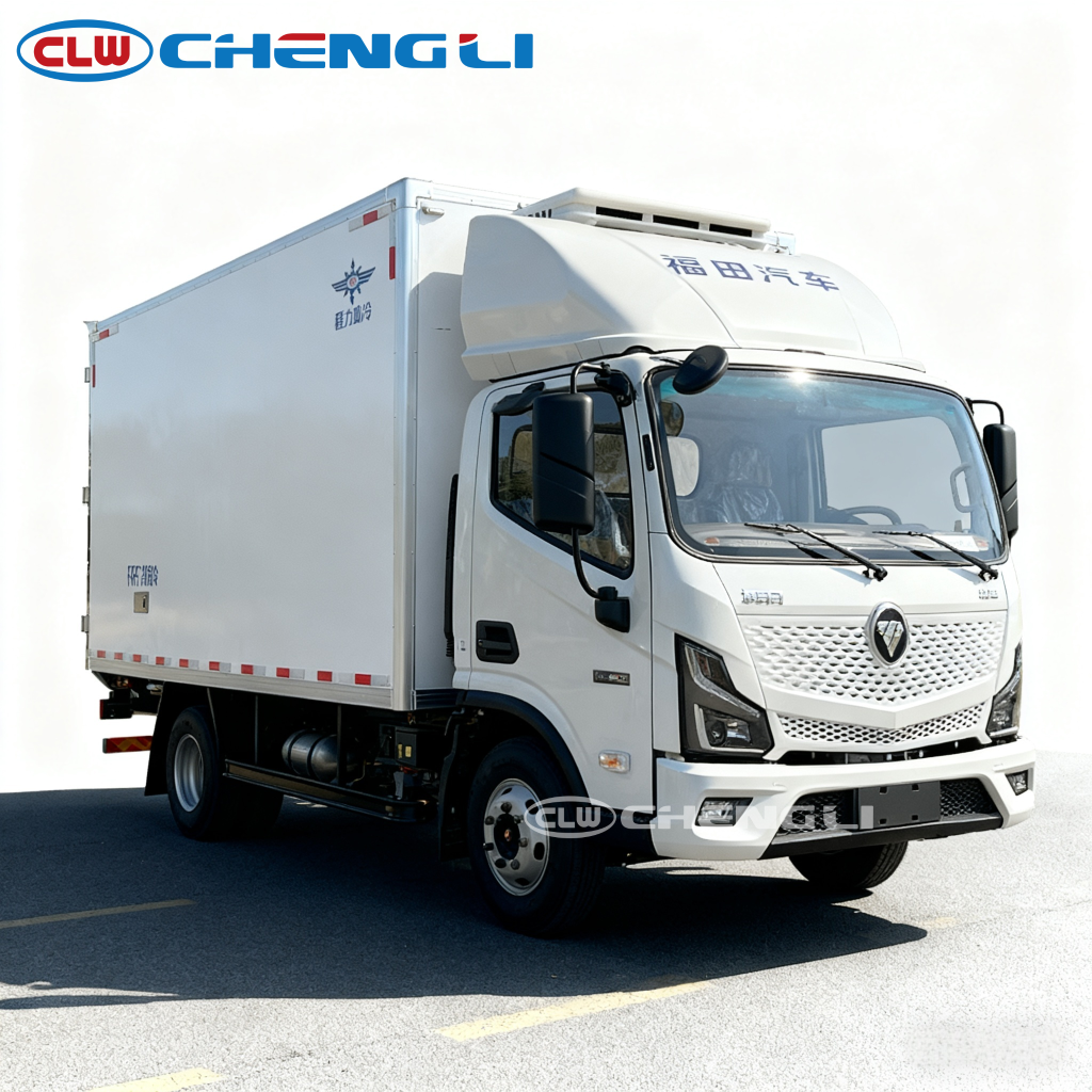 Foton Electric Refrigerated Truck Chassis Designed specifically for electric vehicles, the chassis features a reinforced frame to withstand heavy loads. It integrates the battery pack seamlessly into the floor, lowering the vehicle’s center of gravity for improved stability.