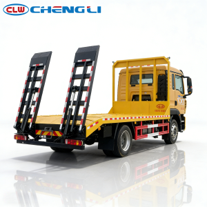 The flatbed of HOWO 4×2 Flatbed Truck is built with 100x100mm square tube cross beams and 5mm pattern plate, extending 6.5m including the ramp. Optional single or double hydraulic ladder ramps simplify loading and unloading of heavy equipment.
